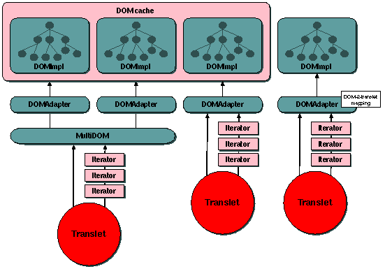 we wish to let translets run within servlets / JSPs with a common DOM cache.